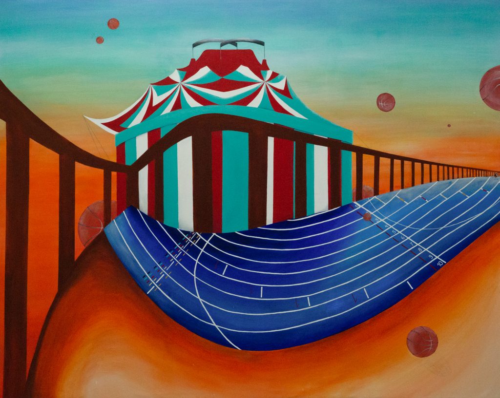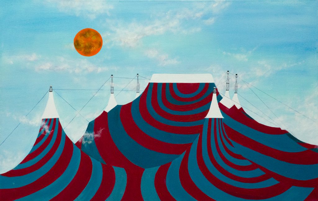 Circus Fields, five-part series, 180 x 265 cm, 60 x 90 cm, 180 x 100 cm, 50 x 80 cm, 100 x 150 cm, Acrylic on canvas, 2019